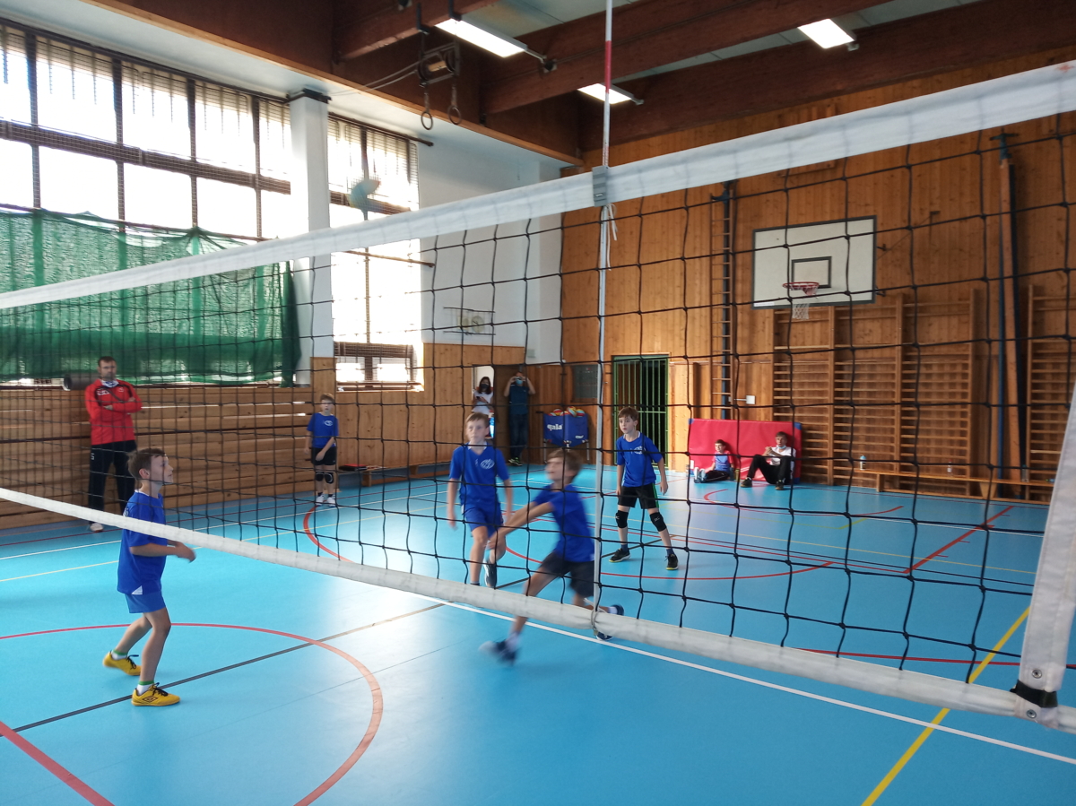 Po převlečení do dresů a kvalitní společné rozcvičce, zakončené bojovým pokřikem, jsme nastoupili hned k prvnímu zápasu s družstvem Klatov. Ačkoli byl soupeř o něco větší, naši se nezalekli a pustili se nebojácně do boje. V začátku zápasu nám ale chvíli trvalo, než jsme se dostali do hry a přestali být nervózní, brzy jsme však se soupeřem srovnali krok a sehráli vyrovnanou partii. Bohužel, rozhodl náskok soupeře ze začátku a tak jsme prohráli první set 19:25. Druhý set jsme již začali lépe a všichni borci na kurtu podali kvalitní týmový výkon. Hrál se oboustranně hezký volejbal, okořeněný několika skvělými akcemi, nicméně i tato hra musela mít vítěze a štěstí se opět přiklonilo na stranu hostů z Klatov. Druhý set skončil také prohrou 22:25.